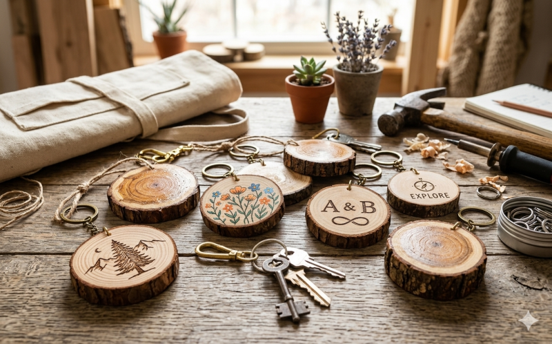 Rustik ve Şık Tasarım: Doğal ahşabın sıcaklığı ve rustik görünümü, anahtarlarınıza otantik bir hava katar. Hem şehirli hem de doğa severlerin beğenisini kazanan bu tasarım trendi son yıllarda hızla büyümektedir.